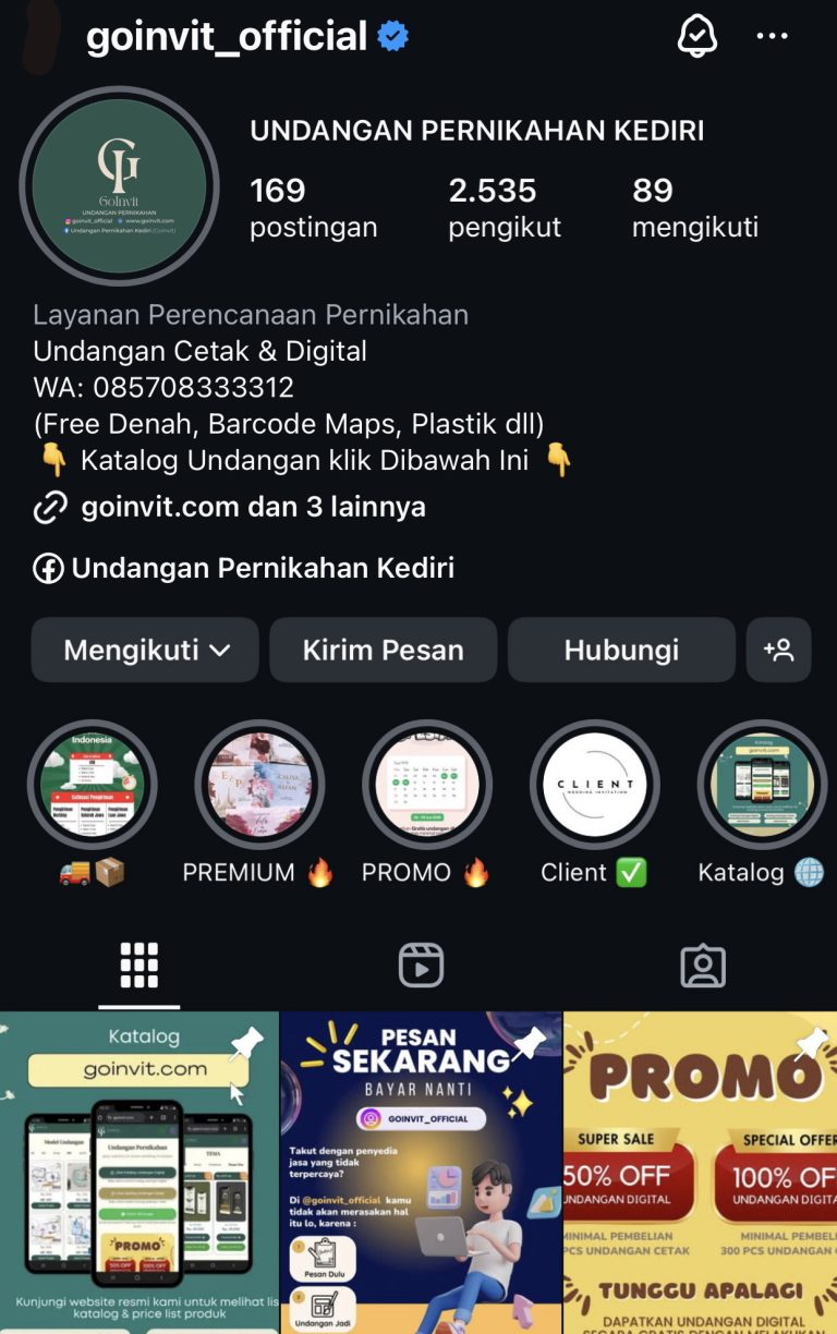 Kunjungi akun instagram/tiktok/facebook resmi kami untuk mendapatkan informasi promo terbaru undangan cetak/digital